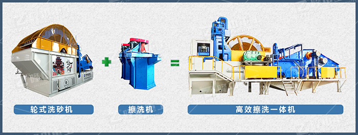將傳統(tǒng)擦洗機(jī)與輪式洗砂機(jī)相結(jié)合,能夠使物料與物料充分摩擦去除表面附著物,同時(shí)采用高速旋轉(zhuǎn)的攪拌軸,使清洗效果顯著提高